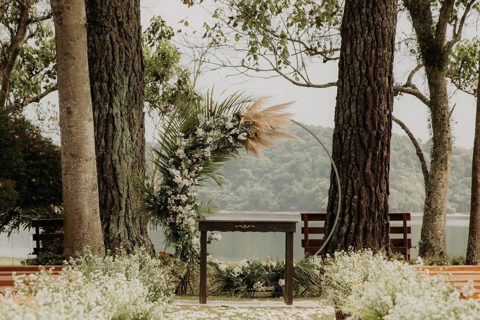 Nossa cerimônia será diurna, ao ar livre, em um espaço cercado por verde e à beira da represa. O ambiente tem um clima leve, natural e acolhedor. Como estaremos no mês de junho, pode ser que a temperatura esteja um pouquinho mais fresca — então sugerimos que levem um casaqueto, pashmina ou blazer leve, para usar caso sinta necessidade.